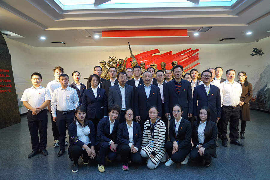 活動(dòng)當(dāng)天,大家參觀了位于新城投資集團(tuán)辦公大樓一、二樓的桂林市黨群服務(wù)中心。講解員為黨員們一一講解了中心的定位、功能及各展區(qū)的內(nèi)容,黨員們認(rèn)真聆聽(tīng)講解員的講解,依次參觀了桂林市黨員志愿者服務(wù)總站、黨群業(yè)務(wù)受理區(qū)和黨組織活動(dòng)區(qū)等展廳。體驗(yàn)了“健康小屋”“城市書(shū)吧”“i游桂林”“時(shí)光隧道”“微笑墻”“非遺文化屋”“紅色影院”“電子翻書(shū)”等功能設(shè)施。通過(guò)觀看3D幻影成像《湘江戰(zhàn)役》和微電影《廖俊波》,真切感受了先輩們踐行初心拋頭顱、灑熱血的壯舉及廖俊波同志對(duì)黨忠誠(chéng)、無(wú)私奉獻(xiàn)的高尚品質(zhì)。在以湘江戰(zhàn)役為歷史背景而制作的雕塑前,全體黨員合唱《國(guó)際歌》《中華人民共和國(guó)國(guó)歌》,重溫入黨誓詞。
