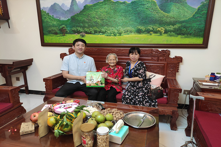 上圖為慰問組慰問九十多歲高齡社區(qū)老人