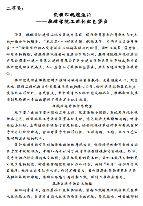 二等獎:唐際晴《黨旗作帆破浪行——桂林學院工地的紅色堡壘》