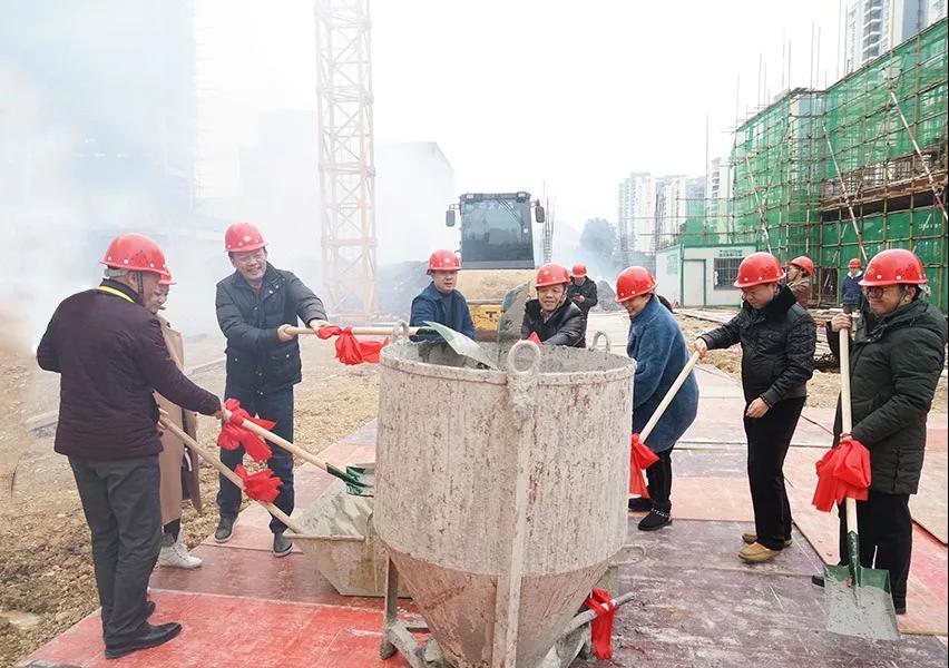 2019年1月21日桂林市臨桂新區(qū)管理委員會(huì)副主任文杰,新城投資集團(tuán)總經(jīng)理周道林,副總經(jīng)理鄧仁友,工會(huì)主席譚力源,寶湖雙語(yǔ)教育有限公司董事長(zhǎng)兼總經(jīng)理周靜,寶湖雙語(yǔ)教育有限公司董事莫俊,寶湖教育投資有限公司總經(jīng)理劉巡宇,副總經(jīng)理余佳等領(lǐng)導(dǎo)參加了新城寶湖書院4號(hào)樓封頂儀式。