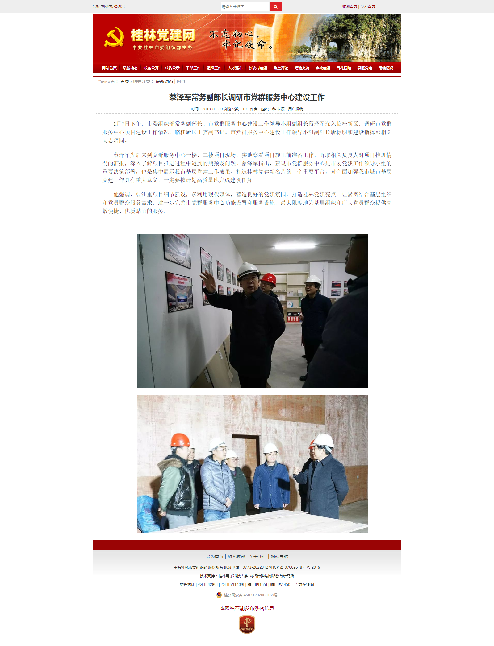桂林黨建網(wǎng) 蔡澤軍常務副部長調(diào)研市黨群服務中心建設工作