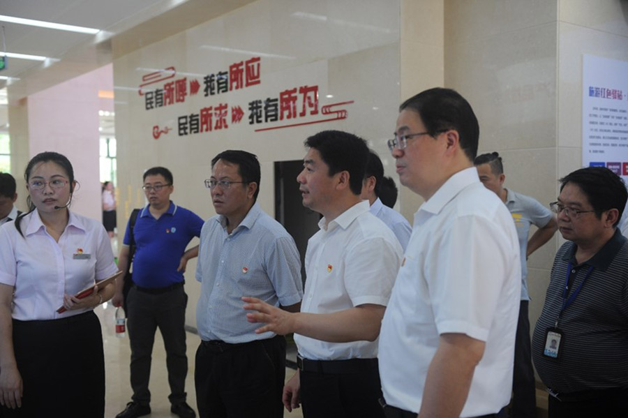 2019年7月1日,在中國共產(chǎn)黨建黨98周年到來之際,桂林市委副書記白松濤一行專程到桂林市黨群服務中心調(diào)研指導試運行情況。市委常委、組織部部長、市黨群服務中心建設工作領導小組組長彭東光陪同調(diào)研。