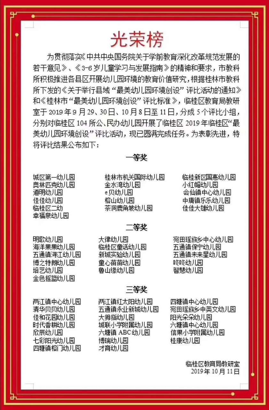 國惠幼兒園獲2019年臨桂區(qū)“最美幼兒園環(huán)境創(chuàng)設(shè)”一等獎