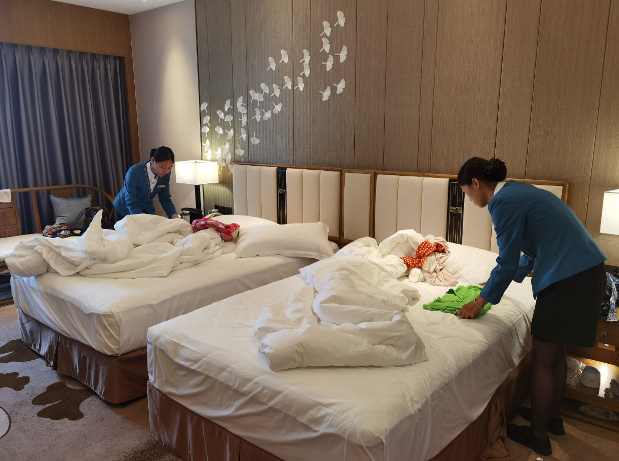 安全無小事。后勤保障部接到會(huì)議通知,提前開展消防安全演習(xí)、安全檢查、防疫控疫演習(xí)和全員疫情培訓(xùn),力求安保工作百密無一疏。餐飲部根據(jù)會(huì)務(wù)組提供賓客要求,精心準(zhǔn)備菜單,并嚴(yán)格把控食品質(zhì)量安全;房務(wù)部認(rèn)真梳理、精心準(zhǔn)備,結(jié)合各國(guó)風(fēng)情特色,特別設(shè)計(jì)和布置客房;后勤保障部關(guān)注細(xì)節(jié),全程跟進(jìn)服務(wù),設(shè)備間24小時(shí)派人值守,確保接待期間正常運(yùn)轉(zhuǎn),重點(diǎn)加強(qiáng)巡檢力度,嚴(yán)格控制場(chǎng)內(nèi)場(chǎng)外安全管理,竭力配合做好安全保障工作;宴會(huì)部根據(jù)會(huì)場(chǎng)需求,隨時(shí)調(diào)整會(huì)場(chǎng)布置,用周密服務(wù)確保論壇及晚宴順利進(jìn)行;市場(chǎng)部全程服務(wù)問題一對(duì)一開展對(duì)接跟進(jìn),確保每位遠(yuǎn)到而來的客人都能在宏謀大酒店享受賓至如歸的體驗(yàn)。