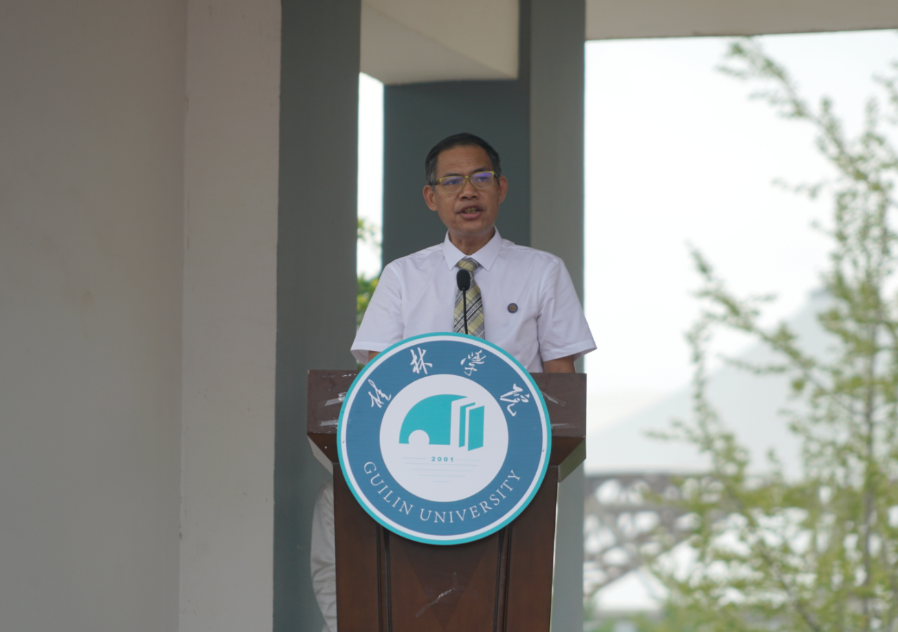 周道林表示,作為桂林學(xué)院的首屆新生,大家是學(xué)校新發(fā)展的見證者和參與者。為了給大家創(chuàng)造更好的學(xué)習(xí)環(huán)境,提供更好的發(fā)展平臺,學(xué)校將認真貫徹落實教育部致自治區(qū)人民政府《關(guān)于同意廣西師范大學(xué)漓江學(xué)院轉(zhuǎn)設(shè)為桂林學(xué)院的函》等文件精神,加大辦學(xué)投入,進一步完善辦學(xué)條件,按照“做強新文科、壯大新工科、拓展新農(nóng)科和新醫(yī)科”的基本思路,實施“強基礎(chǔ)補短板、重內(nèi)涵提質(zhì)量、育特色樹品牌”戰(zhàn)略,堅定“規(guī)范高效、特色鮮明、質(zhì)量與就業(yè)雙優(yōu)的國有民辦城市大學(xué)”發(fā)展目標(biāo),全面深化教育教學(xué)改革,不斷調(diào)整優(yōu)化學(xué)科專業(yè)結(jié)構(gòu),完善現(xiàn)代大學(xué)內(nèi)部治理體系,提高適應(yīng)區(qū)域經(jīng)濟社會發(fā)展所需要的應(yīng)用型、技術(shù)技能型人才培養(yǎng)質(zhì)量,加快建成桂林人民滿意的創(chuàng)新大學(xué)、開放大學(xué)、窗口大學(xué)。今年4月,習(xí)近平總書記在桂林考察調(diào)研時,給桂林設(shè)定了打造世界級旅游城市的歷史使命。站在新的歷史起點上,希望大家要始終牢記總書記的囑托,主動將自己的學(xué)習(xí)成長、個人發(fā)展與國家的發(fā)展需求緊密結(jié)合,為國家發(fā)展貢獻自己最大的力量。更多的關(guān)注桂林市的發(fā)展,用自己的所學(xué)所長來為桂林市的建設(shè)添磚加瓦。