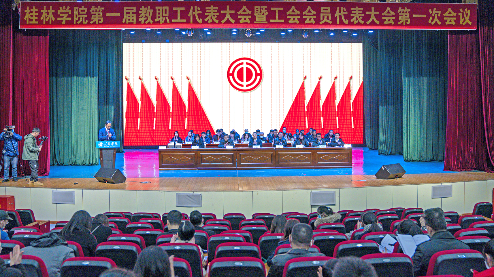 2022年1月15日上午,桂林學(xué)院第一屆教職工代表大會暨工會會員代表大會第一次會議在學(xué)校弘善講堂召開。市總工會黨組成員、副主席、教育工會主席莫曦媛,市教育工會常務(wù)副主席陳東,新城投資集團黨總支書記、董事長、桂林學(xué)院董事長周道林,新城投資集團副總經(jīng)理、桂林學(xué)院副董事長鄭善華出席會議。桂林學(xué)院校長楊樹喆等大會主席團成員在主席臺就座。桂林學(xué)院黨組織負(fù)責(zé)人唐文紅主持會議。正式代表、特邀代表、列席代表近150人參加大會。