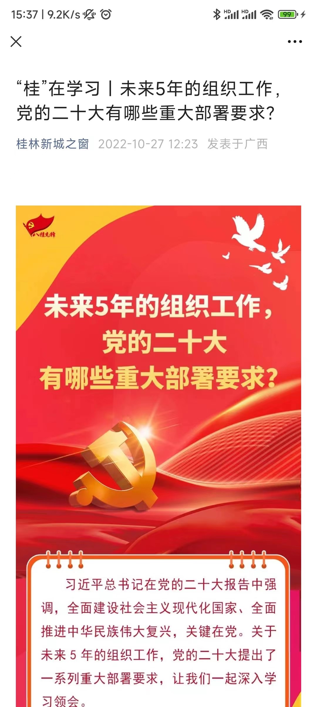 2022年11月1日,集團(tuán)黨總支副書記、總經(jīng)理黃峻主持召開黨總支(擴(kuò)大)會(huì)議,明確提出把抓好學(xué)習(xí)貫徹黨的二十大精神和習(xí)近平總書記在參加黨的二十大廣西代表團(tuán)討論時(shí)的重要講話作為當(dāng)前和今后一個(gè)時(shí)期的首要政治任務(wù),堅(jiān)持?jǐn)[在首要位置,做到首位首抓。