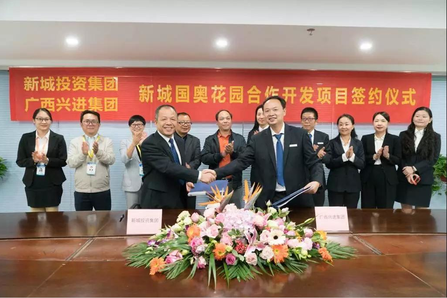 新城投資集團(tuán)與廣西興進(jìn)集團(tuán)簽訂新城國(guó)奧花園剩余土地合作開(kāi)發(fā)協(xié)議書(shū)