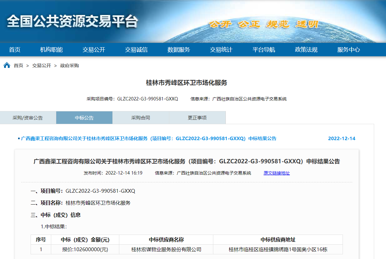 新城投集團下轄宏謀物業(yè)競標(biāo)獲得“秀峰區(qū)環(huán)衛(wèi)市場化服務(wù)項目”