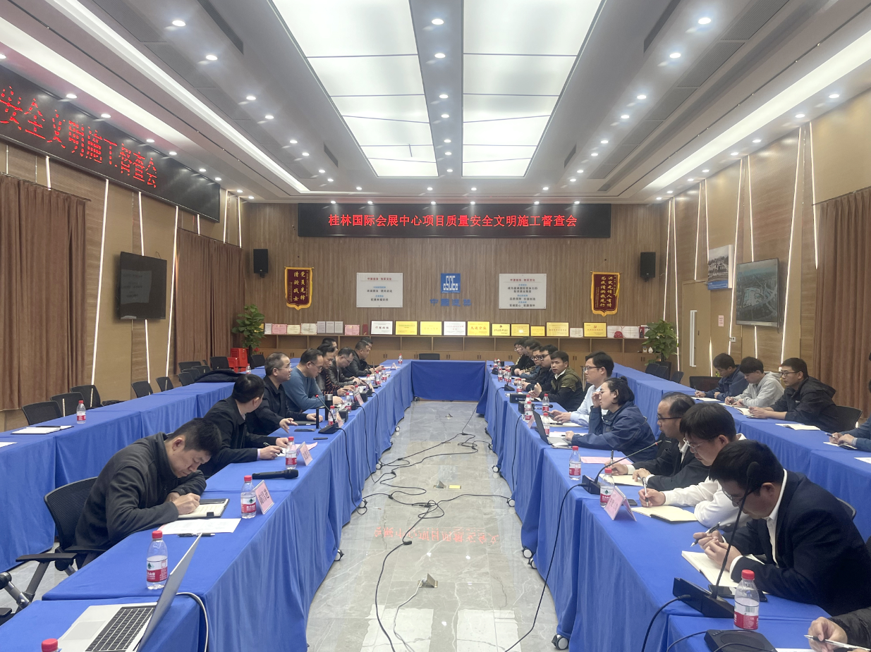 為認真貫徹習近平總書記關(guān)于安全生產(chǎn)重要論述,在全國“兩會”期間進一步做好桂林國際會展中心項目安全生產(chǎn)工作,2023年3月9日,桂林國際會展中心指揮部召開質(zhì)量安全文明施工督查會。臨桂新區(qū)黨工委委員、管委會常務(wù)副主任李星明,副主任張慧慶出席會議。會議由新城投集團黨總支副書記、總經(jīng)理黃峻主持。