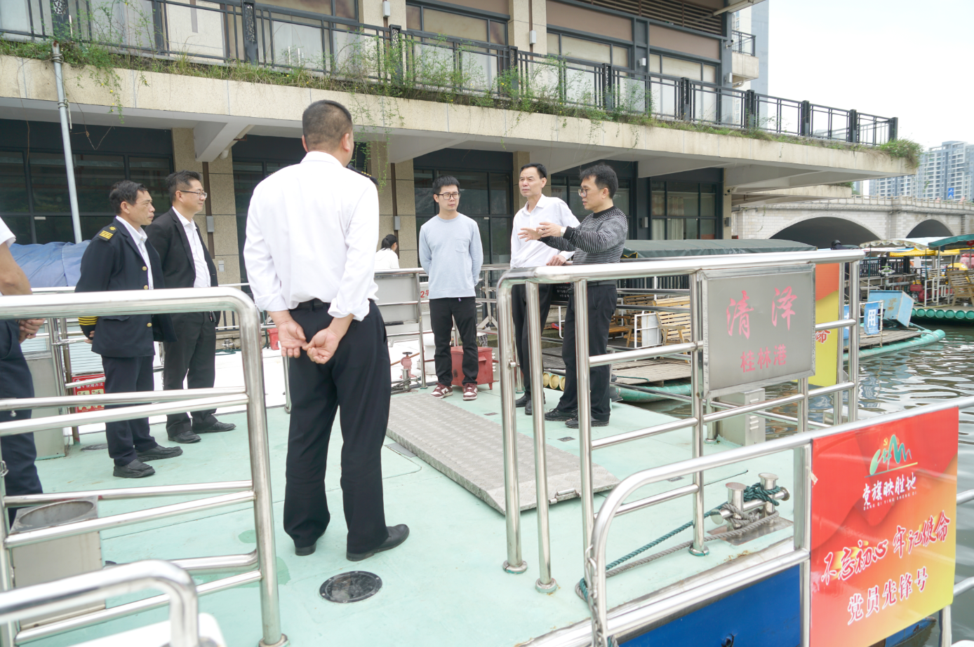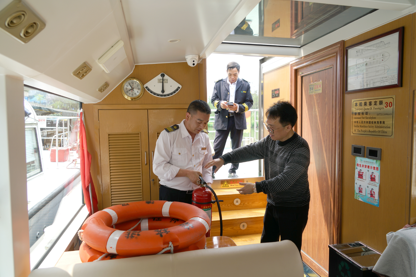 在新區(qū)核心區(qū)水系游船碼頭,檢查組一行認真檢查了各游船內(nèi)的滅火器材、消防設施、安全指示標志、疏散通道等,要求各負責人員認真做好汛期防汛安全工作,落實好安全管理人員責任,保證游船安全運營。