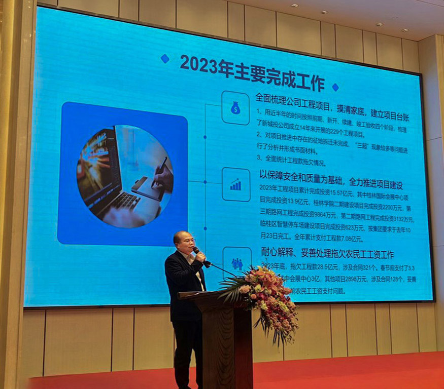 最后,朱毅在會(huì)上對(duì)公司一年來(lái)的發(fā)展進(jìn)行了全面的總結(jié),從“活下去”、“站起來(lái)”、“走出去”三個(gè)方面描繪了2024年的發(fā)展思路,同時(shí)分析了面臨的嚴(yán)峻形勢(shì),也對(duì)大家提出了希望和更高的要求,希望大家在城建集團(tuán)的領(lǐng)導(dǎo)下,團(tuán)結(jié)一心,共同努力,為公司的美好未來(lái)貢獻(xiàn)自己的力量和智慧!