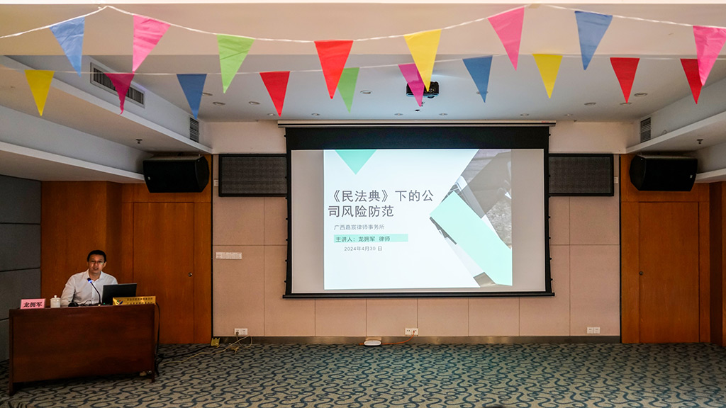 為認(rèn)真貫徹落實(shí)習(xí)近平總書(shū)記對(duì)廣西重大方略要求和對(duì)桂林的重要指示精神,鑄牢中華民族共同體意識(shí),以民族法治宣傳助力推動(dòng)“五個(gè)家園”建設(shè),把法治文化與民族文化、傳統(tǒng)文化相融合。4月30日上午,新城投集團(tuán)邀請(qǐng)廣西嘉宸律師事務(wù)所龍擁軍律師為全體干部員工作《公司的法律風(fēng)險(xiǎn)防范》普法講座。受集團(tuán)黨委副書(shū)記(主持工作)、副董事長(zhǎng)、總經(jīng)理朱毅委托,集團(tuán)董事、副總經(jīng)理劉敏出席講座并講話(huà)。