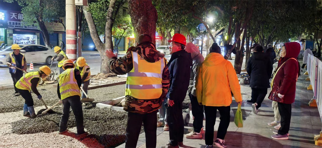 為確保蘆笛小學(xué)教學(xué)活動(dòng)正常進(jìn)行,最大限度降低對(duì)周邊居民日常出行的影響,項(xiàng)目采取夜間和周末加班加點(diǎn)的工作方式,全體黨員干部職工發(fā)揚(yáng)“五加二、白加黑”的奮斗精神,爭(zhēng)分奪秒推進(jìn)工程進(jìn)度,成功在兩天內(nèi)超額完成蘆笛小學(xué)門(mén)口130多米人行道1300多平方米的透水混凝土改造任務(wù),彰顯了項(xiàng)目團(tuán)隊(duì)高效的施工能力和團(tuán)結(jié)協(xié)作的精神風(fēng)貌,充分展現(xiàn)了黨員的先鋒模范作用。