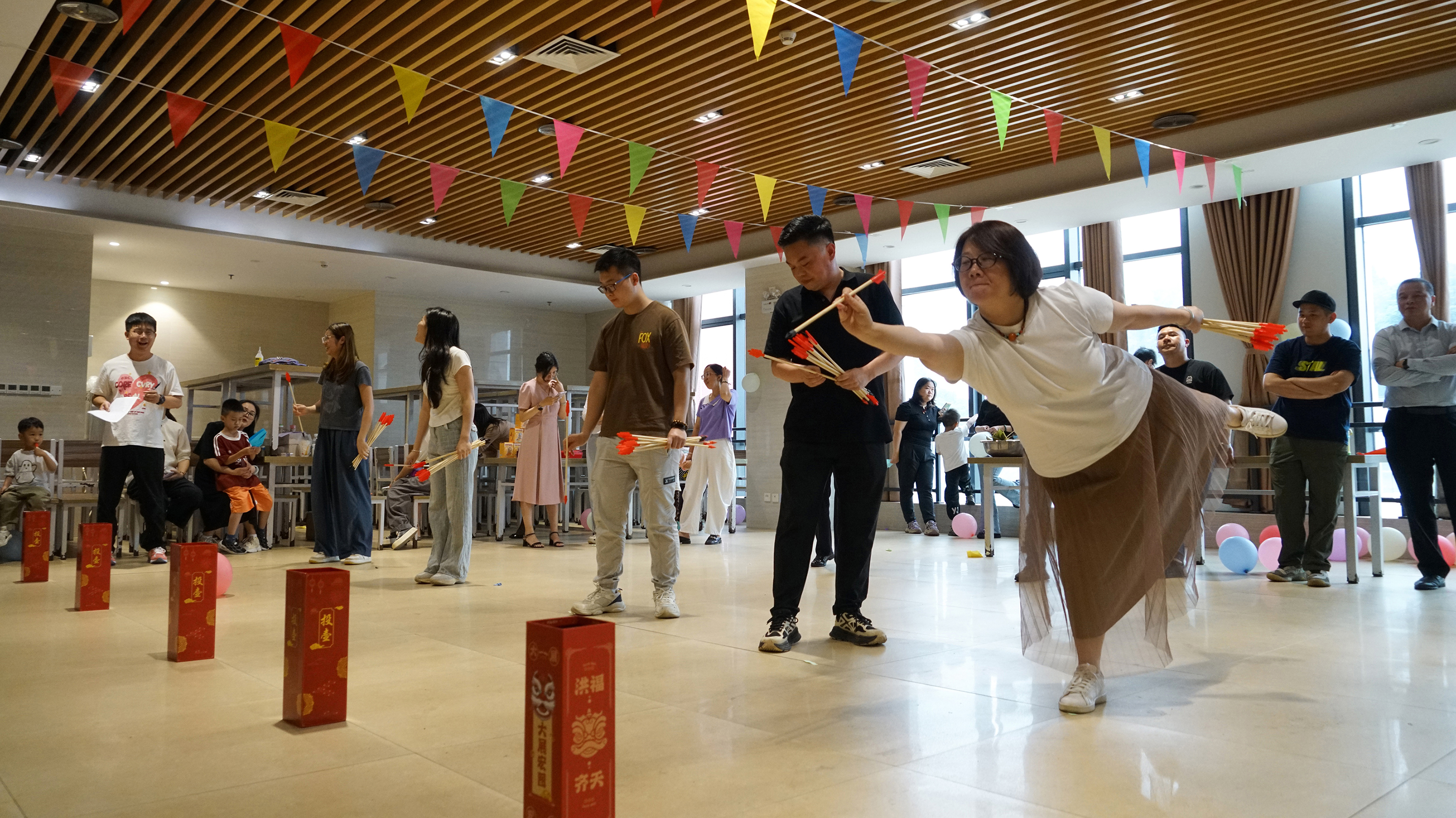 “家企同行·國風(fēng)非遺——民族文創(chuàng),與‘粽’不‘童’”趣味游戲挑戰(zhàn)環(huán)節(jié),將活動(dòng)氛圍推向高潮。童年紙飛機(jī)、端午射五毒、趣味投壺三大趣味游戲讓職工與孩子都沉浸其中。在童年紙飛機(jī)游戲中,為了能讓紙飛機(jī)飛得更遠(yuǎn)、更久,大家興致勃勃地嘗試著各種折法,隨后用力一擲,紙飛機(jī)在空中劃出一道道優(yōu)美的弧線,有的飛得又高又遠(yuǎn),有的則在空中翻轉(zhuǎn)幾圈后穩(wěn)穩(wěn)落地,看著自己折的紙飛機(jī)歡呼雀躍,仿佛回到了無憂無慮的童年時(shí)光。端午射五毒游戲則充滿了傳統(tǒng)韻味,大家手持飛鏢,瞄準(zhǔn)靶心,每當(dāng)有人射中五毒圖案,周圍就會(huì)響起一陣歡呼聲,大家在歡聲笑語中感受著端午節(jié)的傳統(tǒng)習(xí)俗。趣味投壺游戲更是熱鬧非凡,參與者們瞄準(zhǔn)壺口,或站或蹲,調(diào)整著姿勢(shì)和力度,隨著一次次投中,現(xiàn)場(chǎng)的氣氛也一次次被點(diǎn)燃,歡呼聲、加油聲此起彼伏。歡聲笑語回蕩在整個(gè)活動(dòng)現(xiàn)場(chǎng)。各組成員在比賽中相互配合、相互鼓勵(lì),展現(xiàn)了團(tuán)隊(duì)合作的力量。最終,根據(jù)各組獲得的總分,評(píng)選出冠軍組,大家在歡樂中感受到了團(tuán)隊(duì)的溫暖與力量。